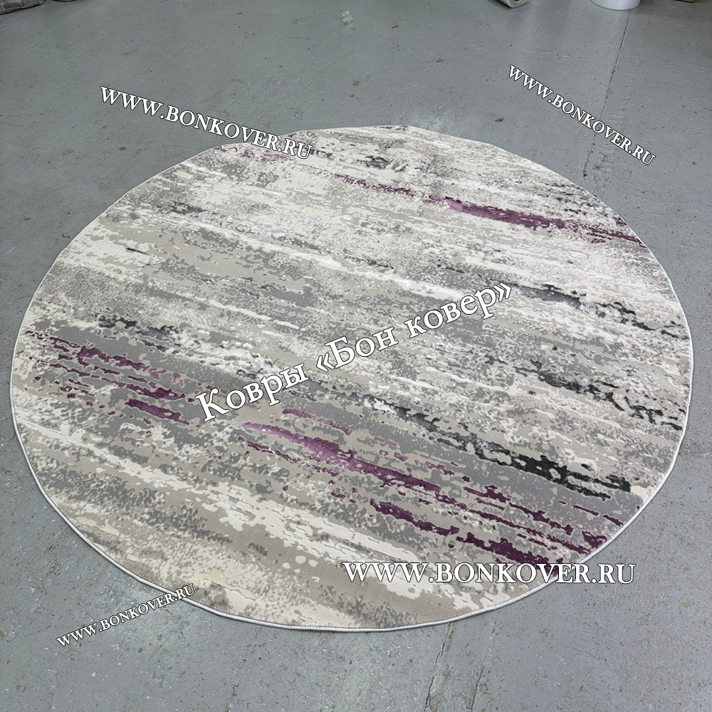 Красивый Круглый Ковер Для Гостиной Сиреневый С Серым Дизайн 30451 наполняет интерьер вашего дома теплом и уютом, гармонично сочетает в себе изящество и стиль. Он соткан из высококачественных материалов, прочный и долговечный.