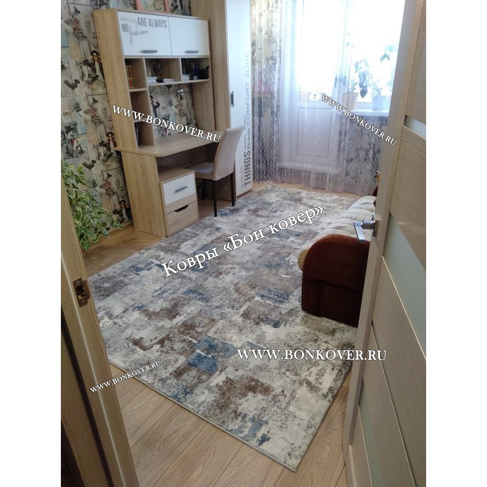Ковер Коротковорсный Лайт Дизайн 34 Абстракция Серый с Синим