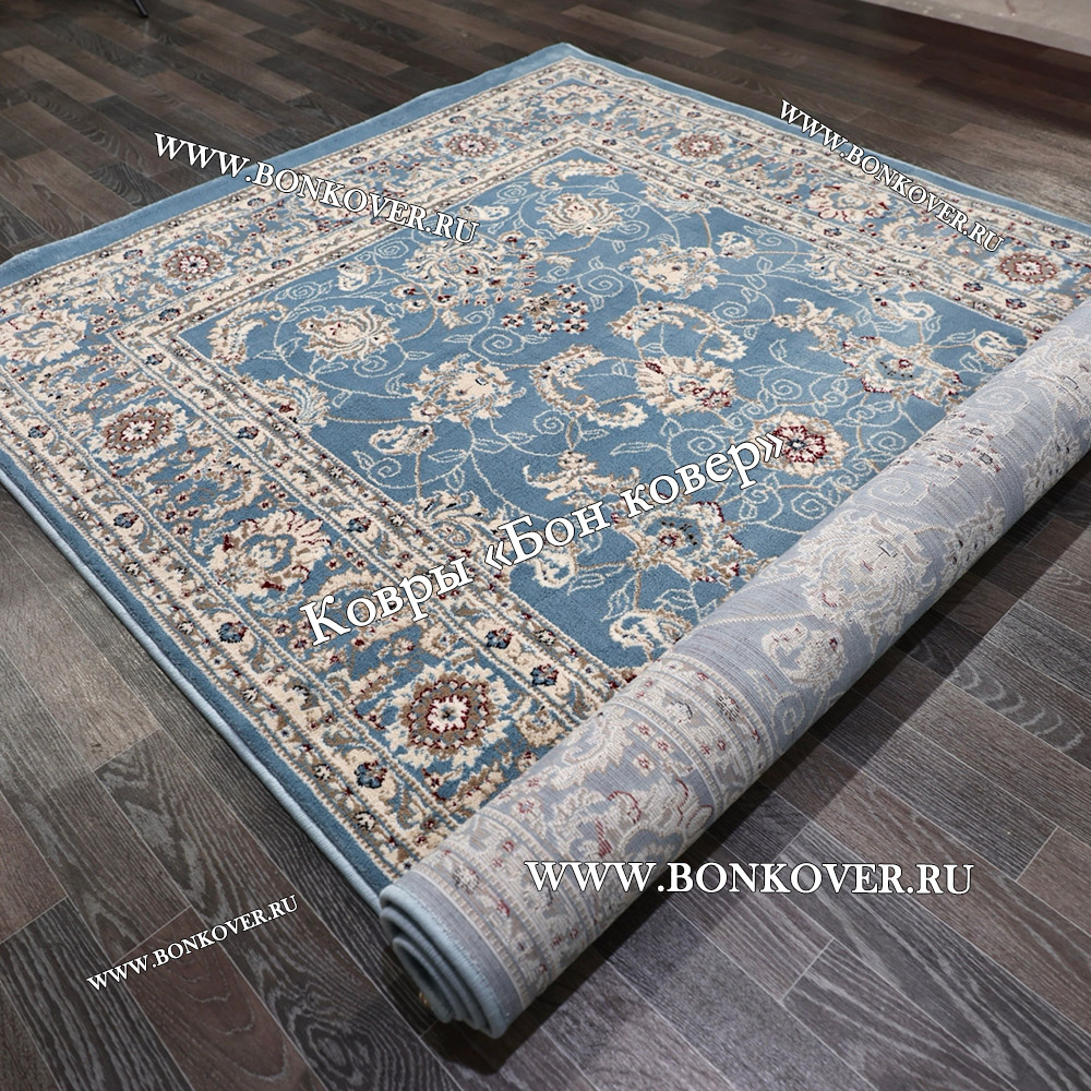 Ковер шикарный, как думалось то и пришло))) Смотришь с одной стороны - почти белый, смотришь с другой -голубой с дымчатым отливом. Короче отличный зачётный коврик, всем рекомендую) Да, совсем забыл про размер. Если честно я думал, что таких размеров не бывает. И тут на тебе, идеальный. Получите и распишитесь)) Всем спасибо.